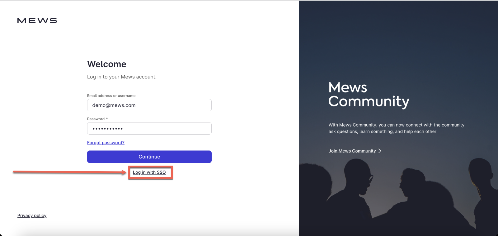 SSO is available for purchase as an add-on. To purchase SSO for your enterprise, contact your Mews Customer Success representative.